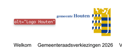 Op alle pagina's staat bovenaan het logo van "gemeente Houten". Het tekstalternatief is echter "Logo Houten". Dit is onvoldoende. Zorg dat alle zichtbare tekst terugkomt in het tekstalternatief.