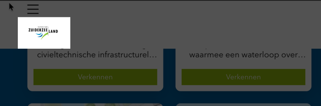 Binnen elke tegel zijn reeds interactieve elementen aanwezig, namelijk de titel (link) en de knop “Verkennen” (link naar dezelfde bestemming). Naast deze twee focusbare elementen is er een extra focusstop op de gehele kaartcontainer, zonder dat deze een eigen actie of functie heeft.