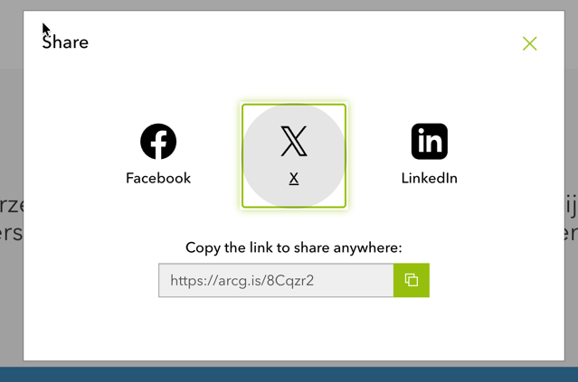 Voor screenreadergebruikers is niet duidelijk welke kaart precies gedeeld kan worden (de knop wordt bij dynamisch tonen wel aangekonidg via aria-live).