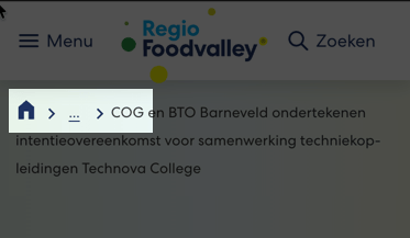 Op mobiele schermen wordt het kruimelpad ingekort. Tussenliggende pagina’s worden vervangen door .... Hierdoor is een deel van de navigatiestructuur niet meer zichtbaar.