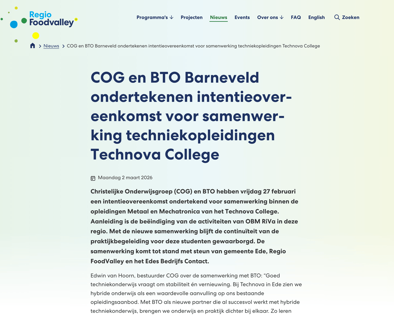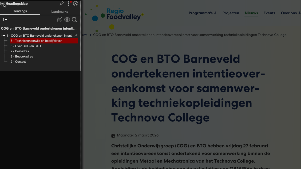 Op verzoek van Regio Foodvalley is een toegankelijkheidsonderzoek uitgevoerd op de door hun aangeboden website, https://regiofoodvalley.nl , om te beoordelen hoe deze voldoet aan de gestelde WCAG norm.