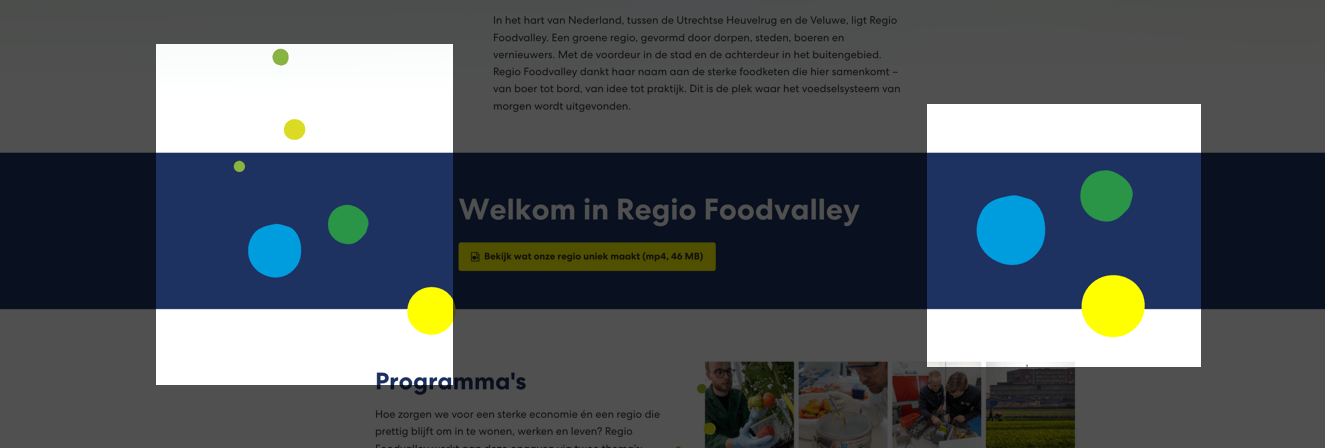 In onder andere de banners en spotlights worden decoratieve afbeeldingen (gekleurde cirkels) geladen via CSS ::before en ::after pseudo-elementen met de content-property. Hierdoor worden de afbeeldingen als visuele content weergegeven, maar zijn ze niet aanwezig in de HTML-structuur en kunnen ze geen alt-tekst krijgen.