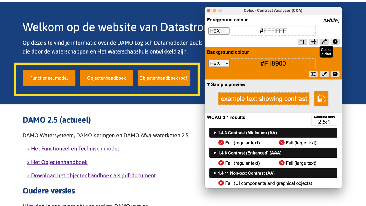Het toegankelijkheidsonderzoek voor de website https://damo.hetwaterschapshuis.nl/ is op 29 december 2025 afgerond. Hiervoor is gebruikgemaakt van de WCAG-EM evaluatiemethode om te kijken hoe de onderzochte website voldoet aan de gestelde norm van WCAG 2.2 Niveau AA.