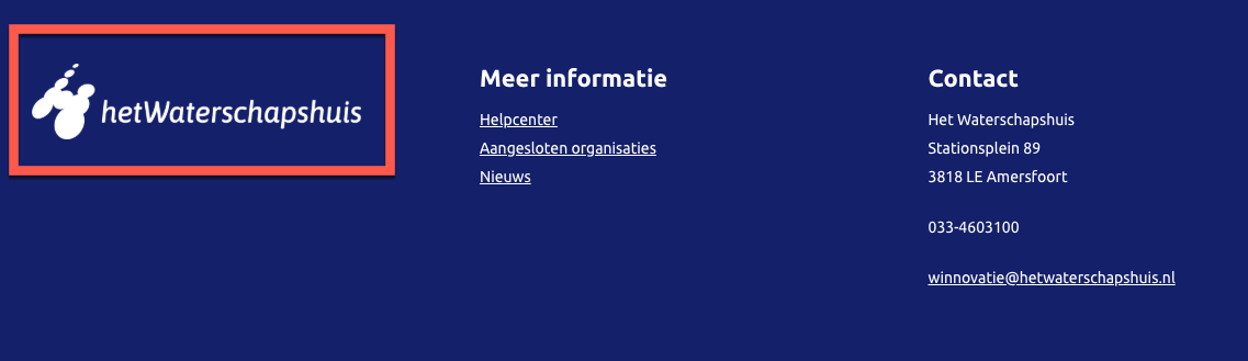 In de footer is het logo van Het Waterschapshuis opgenomen, maar de alternatieve tekst (alt) luidt: