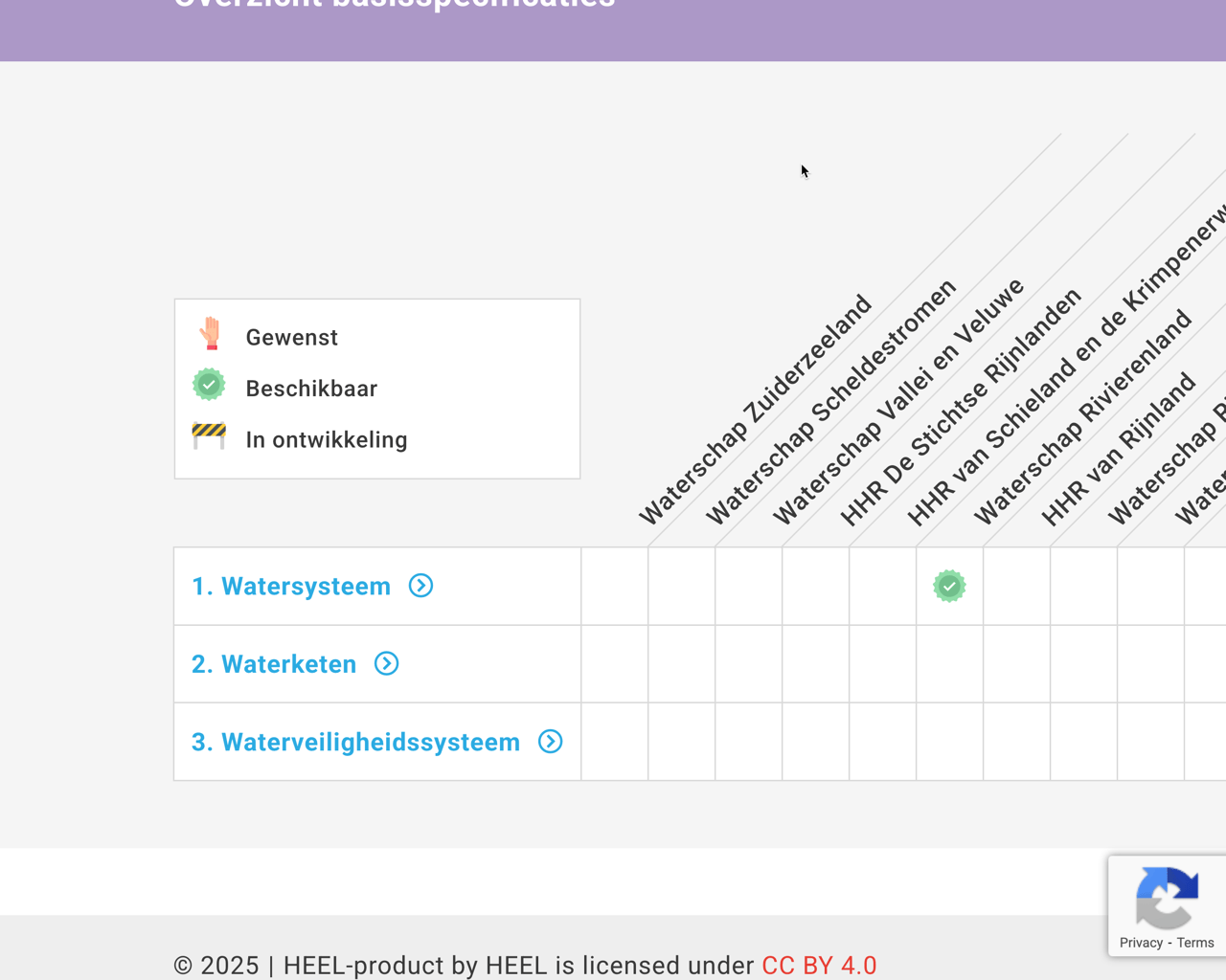 In de tabel overzicht basisspecificaties op de pagina https://heel-nl.nu/netwerk/decompositie/ bevat de eerste tabelkopcel (<th>) een legenda. Deze informatie beschrijft de betekenis van symbolen of aanduidingen in de tabel, maar functioneert niet als koptekst voor de betreffende kolom.
