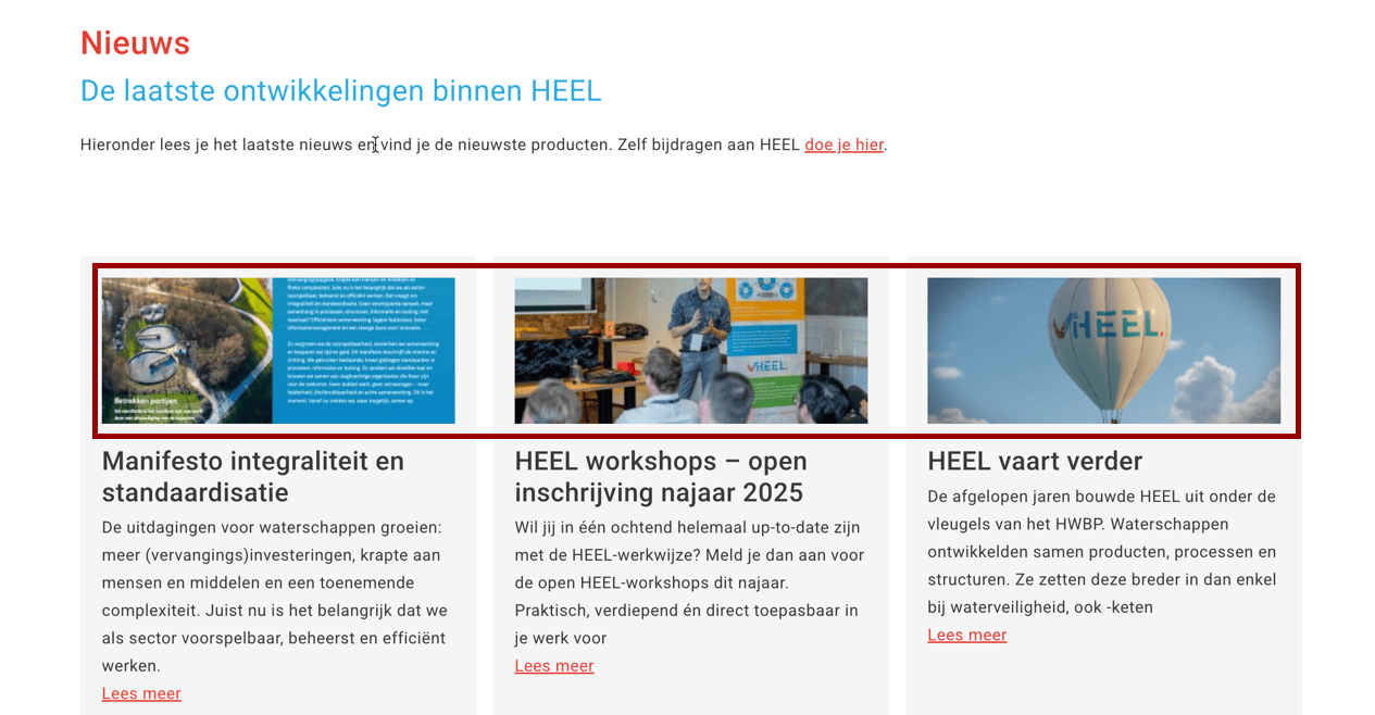 Ditzelfde gebeurt ook op nieuwsberichten, zoals de pagina https://heel-nl.nu/nieuws/manifesto-integraliteit-en-standaardisatie/met de kleine afbeeldingen onder "Overig nieuws".