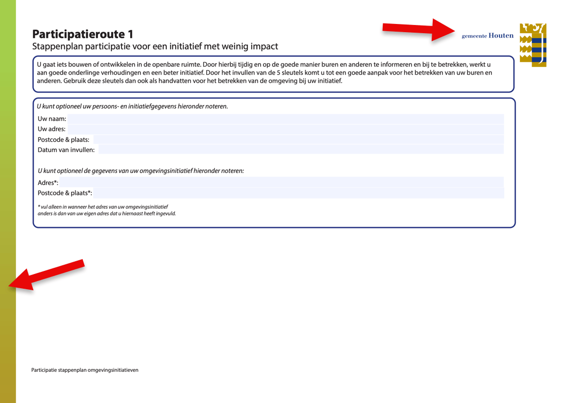 De logo's van de gemeente binnen het document https://www.houten.nl/fileadmin/user_upload/Thema/Omgevingsprogramma__s/Omgevingsinitiatief/Stappenplan_Route1_I_v1.3.pdf zijn verborgen. Voor de eerste weergave dient een tekstalternatief toegevoegd te worden, des te meer omdat het helpt om de oorsprong (gemeente Houten) van het document te duiden. De herhaalde weergaves op opvolgende pagina's kunnen wel verborgen worden om onnodige herhaling te voorkomen.