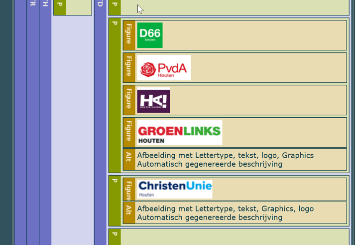 De documenten Document Houten - 051-2025 Amendement D66 Investeer in mantelzorgers - iBabs Publieksportaal en Document Houten - 057-2025 Motie Gecorrigeerde SGP begroting Nieuwe evenementenbeleid - iBabs Publieksportaal bevatten afbeeldingen van logo's van de politieke partijen, maar hiervoor zijn geen of onjuiste tekstalternatieven aanwezig in het document.